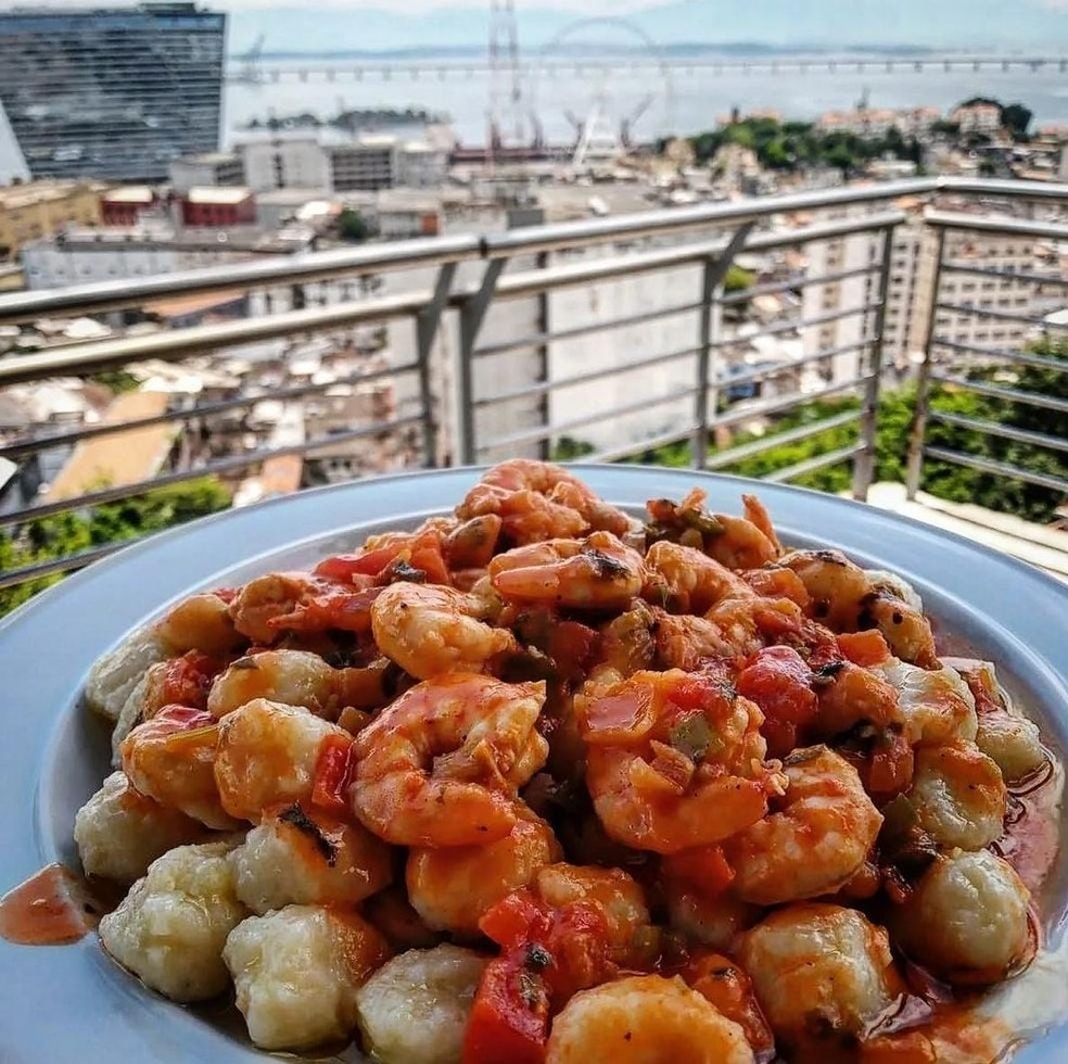 Nhoque de camarão do Bar do Jura,no Morro da Providência,na Região Central do Rio — Foto: Reprodução