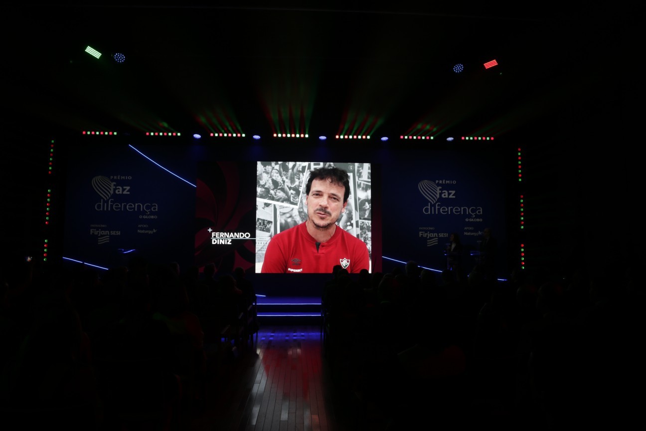 Fernando Diniz agradece o Prêmio Faz Diferença 2023 na categoria Esportes — Foto: Alexandre Cassiano