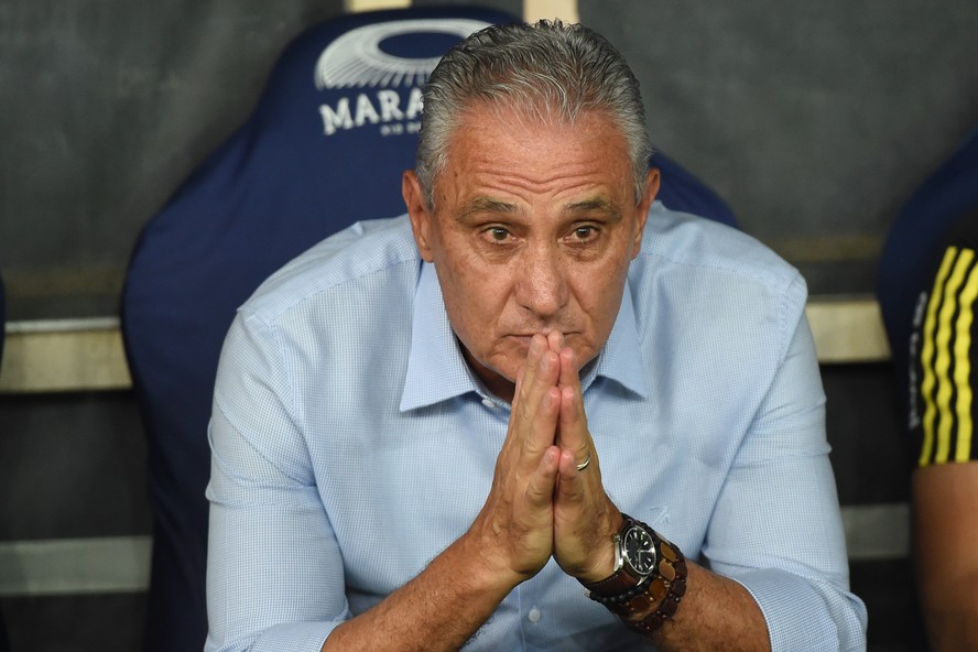 Tite no banco de reservas do Maracanã na partida do Flamengo contra o Bahia — Foto: ALEXANDRE BRUM/Agencia Enquadrar/Agencia O Globo