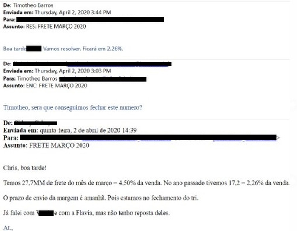 Despesas com com frete de mercadoria que superassem um limite estabelecido em orçamento eram mensalmente reclassificadas para uma despesa de investimento,segundo o MPF. E-mails obtidos pela investigação mostram diálogo de ex-diretores da empresa alterando despesa com frete que seria declarada,reduzindo em mais de R$ 10 milhões.