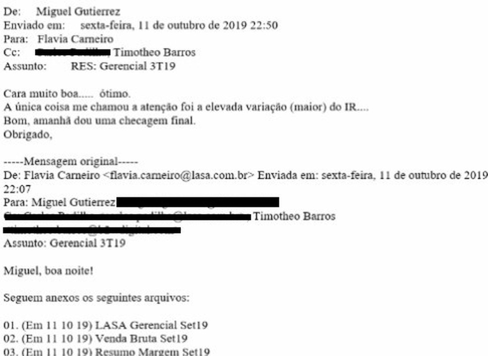 E-mails que constam na investigação do MPF do caso da Americanas — Foto: Reprodução