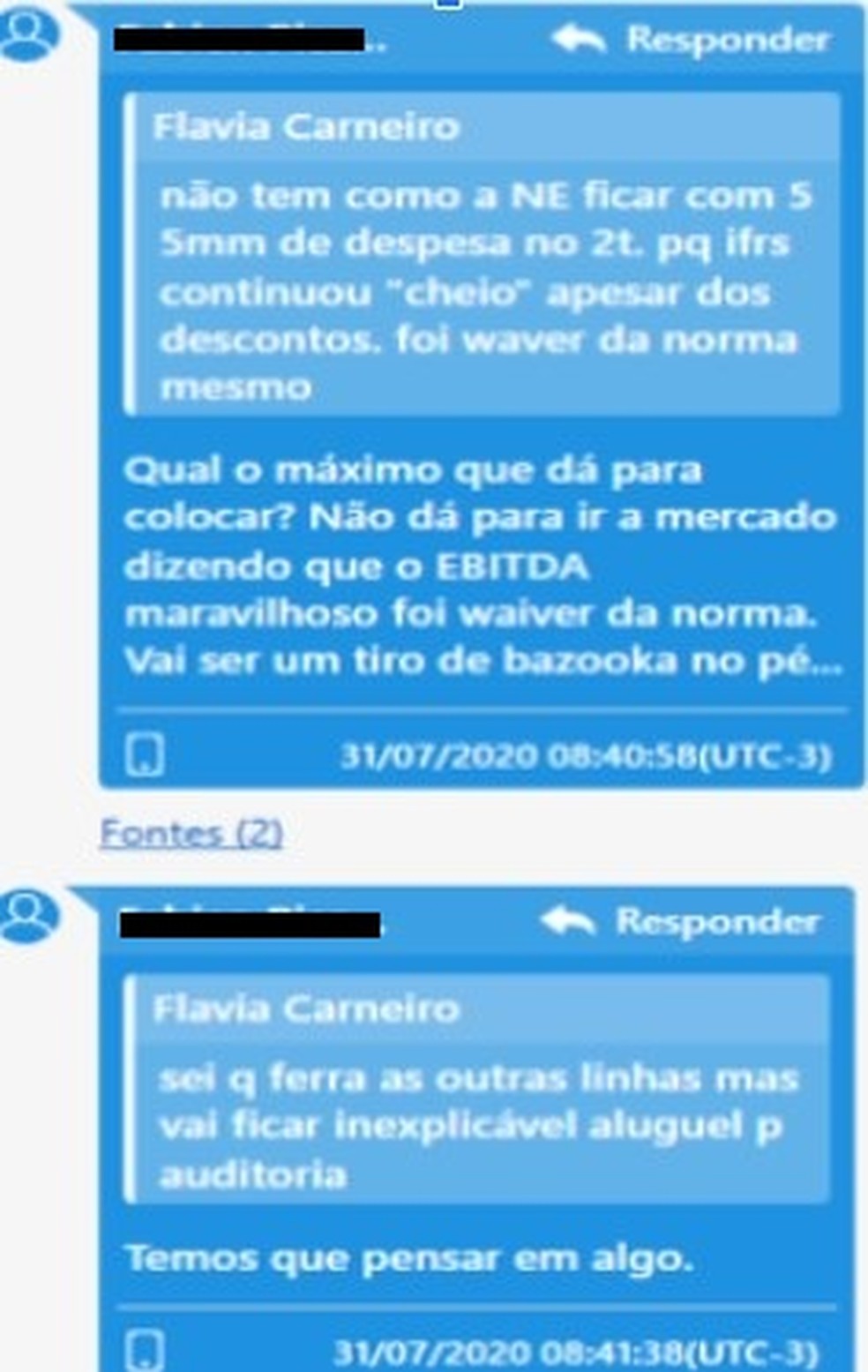 Outra conversa interceptada mostra,um ex-diretor-executivo sugerindo que não fosse divulgado ao mercado que o lucro registrado pela empresa se deu em razão de uma compensação no ICMS,“atitude com a qual Flávia Carneiro concordou,a fim de aparentar uma atividade operacional mais robusta da empresa”.