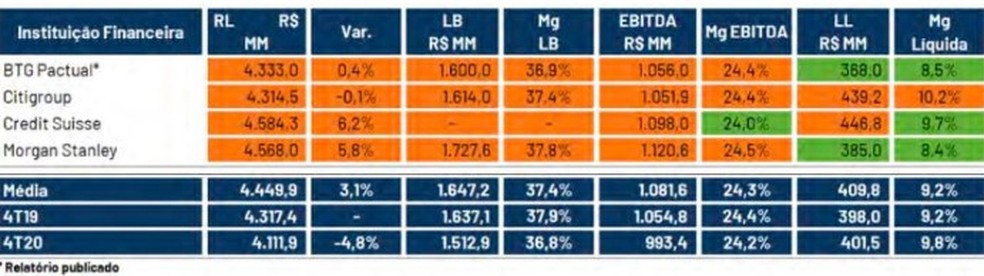 A investigação mostra que havia um arquivo que “trazia comparativos dos números prévios de resultado e as expectativas do mercado em algumas rubricas de maior foco no balanço das companhias,como a receita bruta,margem bruta” e lucro líquido. Uma tabela destacada pela investigação mostra informações de instituições de análise,como BTG Pactual e Morgan Stanley.