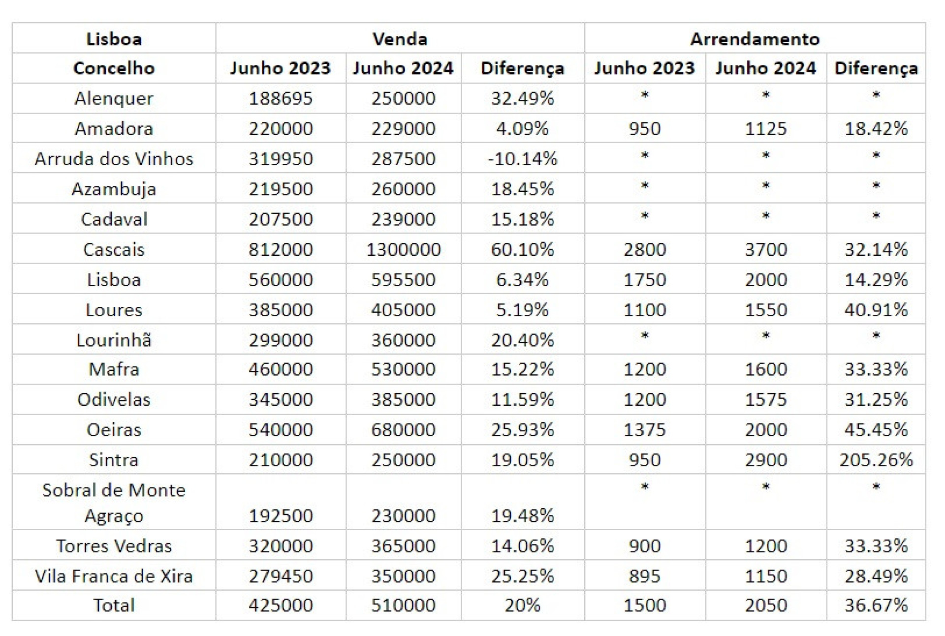 A plataforma de imobiliário comparou os dados deste mês de junho com o dados do mesmo mês do ano transato,tendo concluído que comprar uma casa em Lisboa custa,em média,510 mil euros. Comparativamente com o mesmo período,no ano passado,verifica-se um aumento de 20%,período no qual as casas custavam 425 mil euros.
