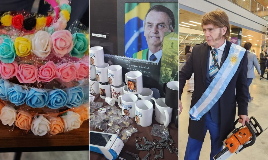 CPAC tem suvenir de político e sósia de Milei — Foto: Hyndara Freitas