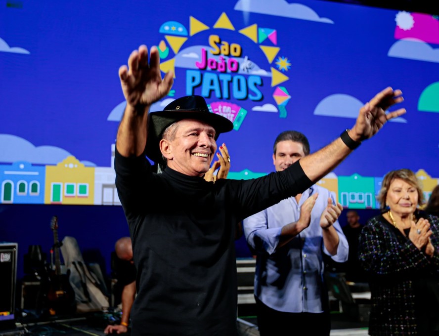 O prefeito de Patos,Nabor Wanderley,observado pelo filho,o deputado federal Hugo Motta (ao fundo): espaço de festas juninas recebeu verba apadrinhada pelo parlamentar — Foto: Reprodução/Redes sociais