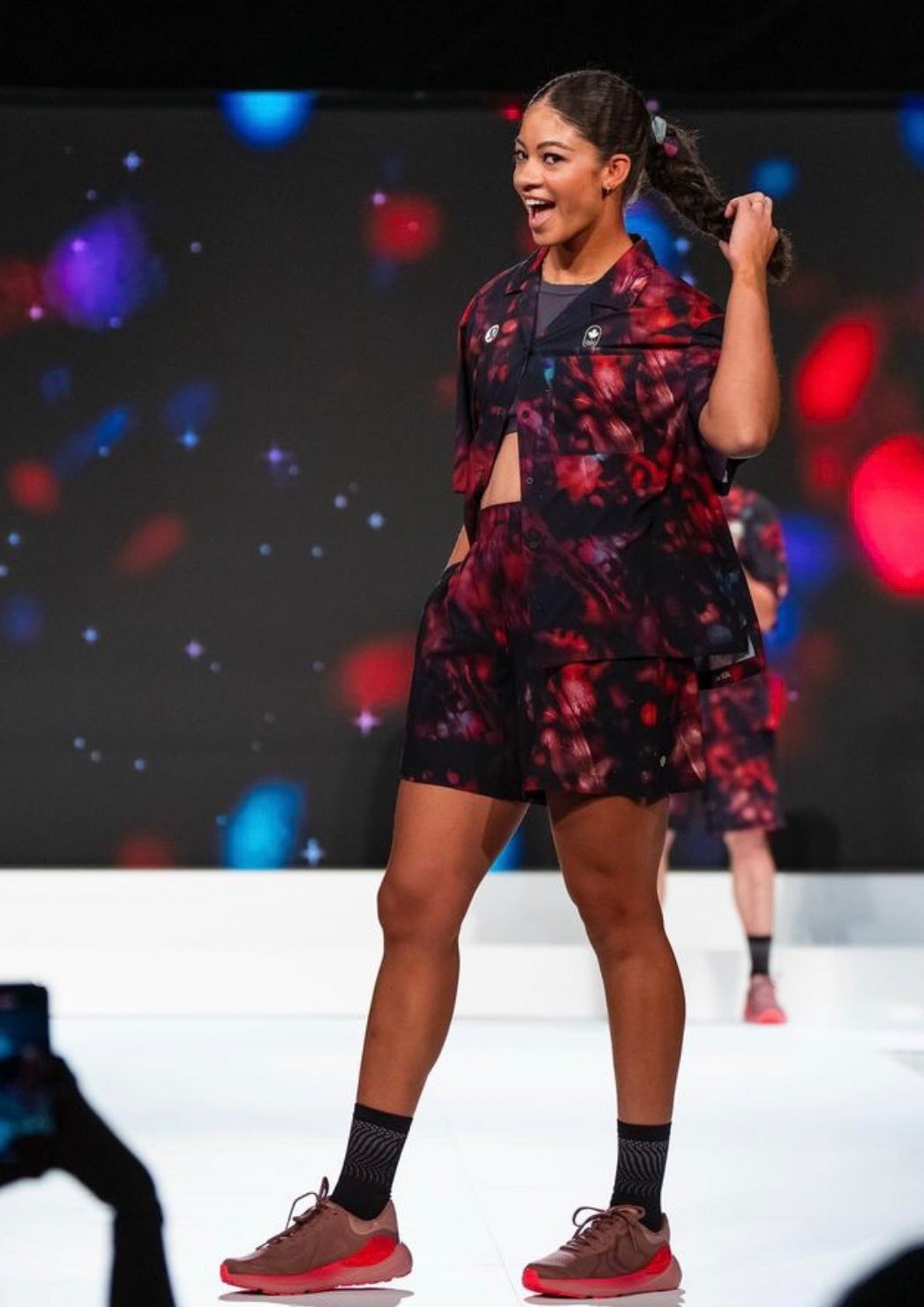 A cenógrafa do projeto transformará o piso de uma das pontes em uma passarela gigante para um desfile de moda,com tapete vermelho e piso de azulejos preto e branco,com personagens vestidos com ternos de cores marcantes.