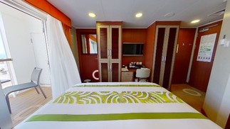 Quartos no navio em que surfistas estão hospedados podem ter até duas televisões