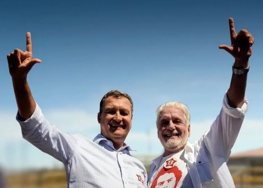 Rui Costa e Jaques Wagner em campanha por Lula no passado — Foto: Divulgação RESUMOSem tempo? Ferramenta de IA resume para você