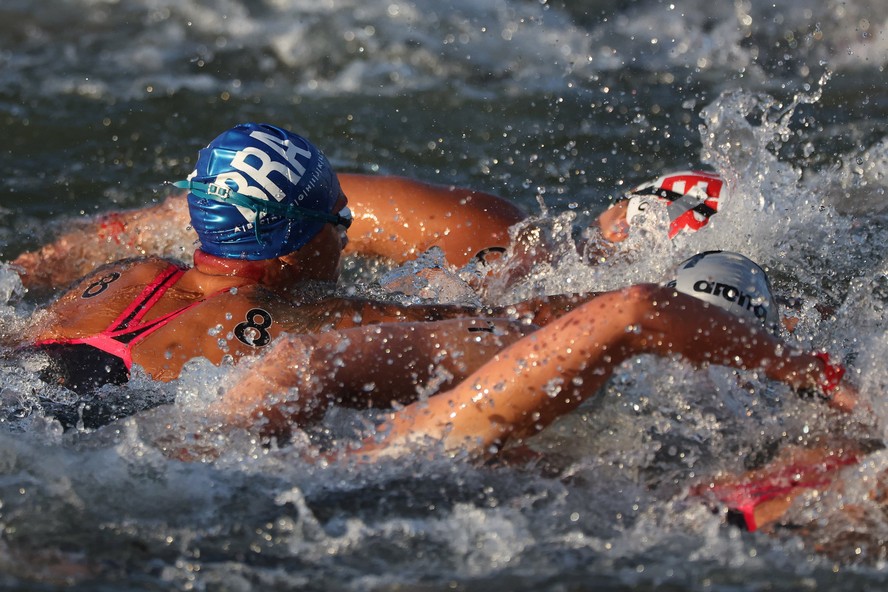 Ana Marcela Cunha nada nas águas do Rio Sens — Foto: Satiro Sodré/CBDA Atual campeã olímpica,Ana Marcela Cunha não conseguiu repetir a performance de Tóquio-2020,e terminou em 4º lugar na pro