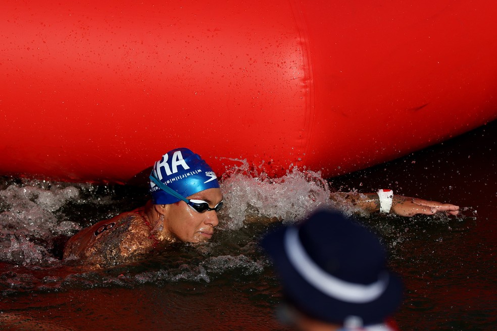 Segundo a atleta,a correnteza atrapalhou a prova,obrigando as nadadoras a fazerem mais esforço quando nadaram contra a força do Rio Sena: