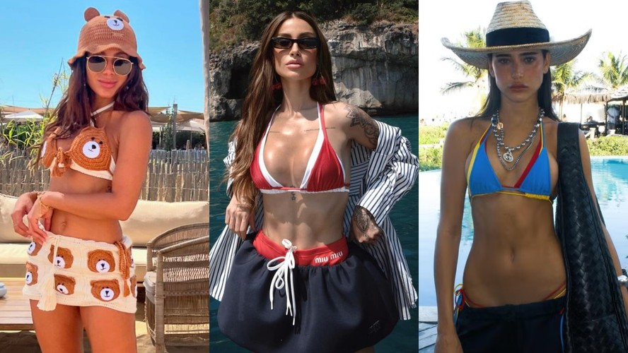 Sobreposição com dois ou três biquínis conquistou famosas — Foto: Reprodução Instagram RESUMOSem tempo? Ferramenta de IA resume para você
