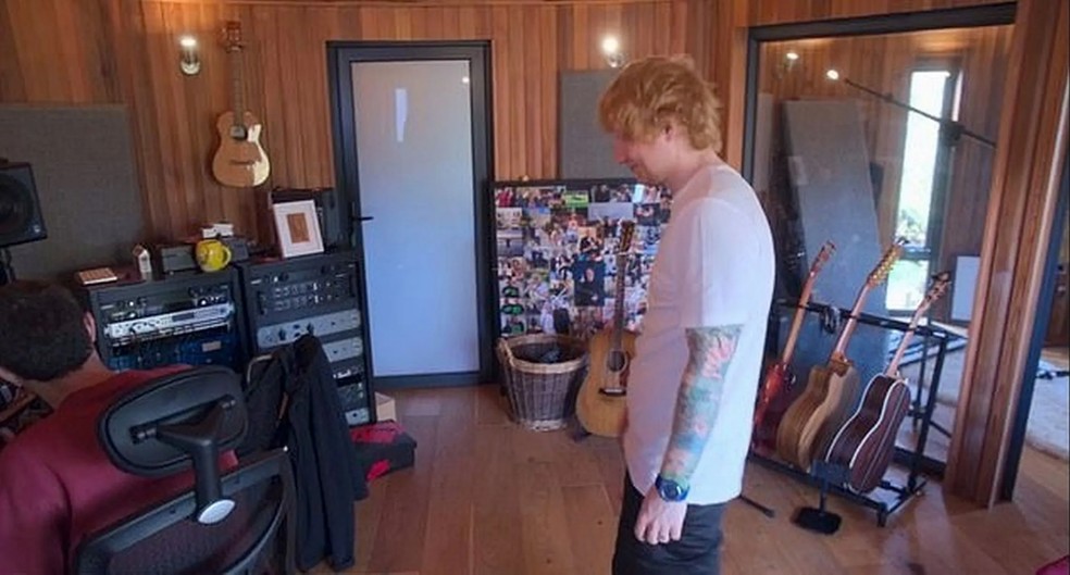 Estúdio de música na mansão de Ed Sheeran — Foto: Disney