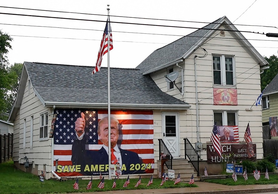Casa de um apoiador de Trump em Wisconsin — Foto: KAMIL KRZACZYNSKI / AFP RESUMOSem tempo? Ferramenta de IA resume para você