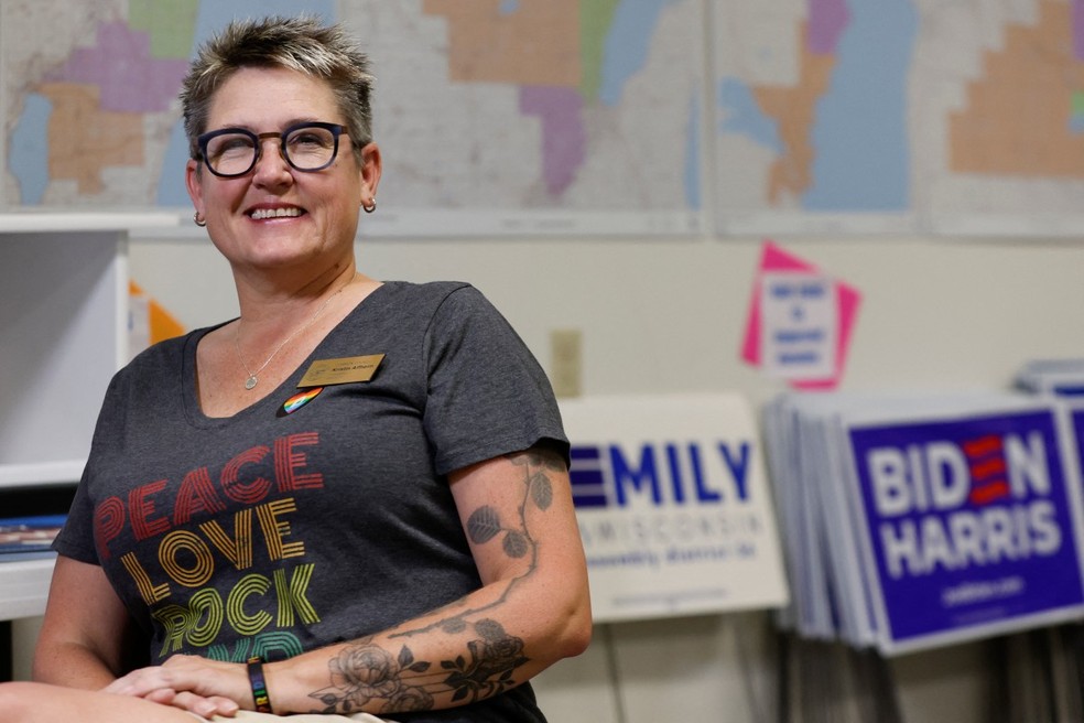 Kristin Alfheim,democrata concorrendo ao Senado estadual,apoia Kamala — Foto: KAMIL KRZACZYNSKI / AFP