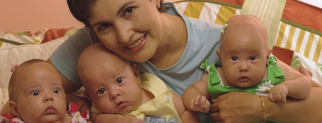 Fátima Bernardes e trigêmeos,1998 — Foto: Ana Branco