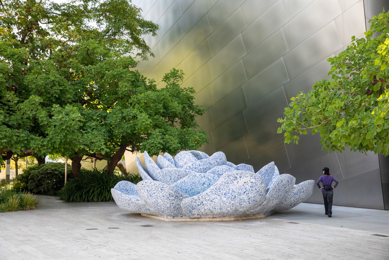 Os belos jardins atrás do prédio do Walt Disney Concert Hall fica perto de uma das estações de metrô em Downtown Los Angeles,na Califórnia — Foto: Beth Coller/The New York Times