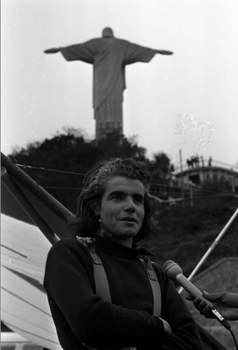 Stephan Dunoyer de Segonzac dando entrevista antes do voo aos pés do Cristo em 1974 — Foto: Sebastião Marinho/Agência O GLOBO
