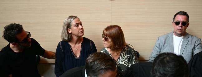 Caroline Darian,à direita,e a mãe,Gisele Pelicot,durante julgamento na França — Foto: CHRISTOPHE SIMON / AFP