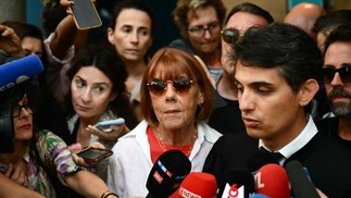 Gisele Pelicot ouve seu advogado Stephane Babonneau falando com a mídia enquanto sai do tribunal durante o julgamento de seu marido acusado de drogá-la por quase dez anos e convidar estranhos para