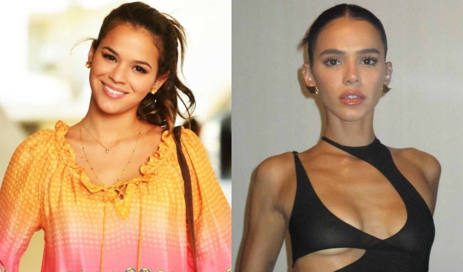 Antes e depois da rinoplastia de Bruna Marquezine — Foto: TV Globo/ Instagram