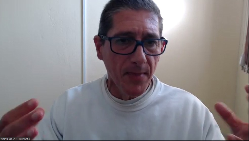 A testemunha Ronnie Lessa fala no terceiro dia de audiência ao STF sobre a morte de Marielle Franco e Anderson Gomes — Foto: Reprodução