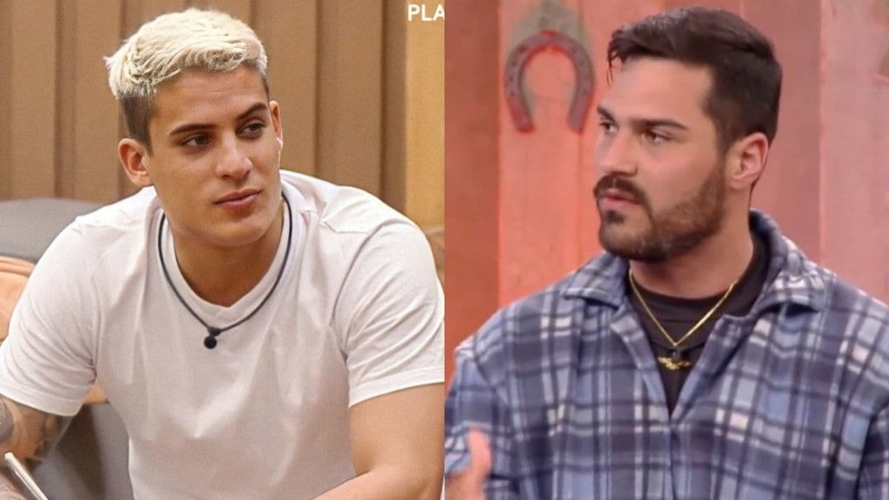 Tiago Ramos e Shayan em "A fazenda" — Foto: Reprodução/Record