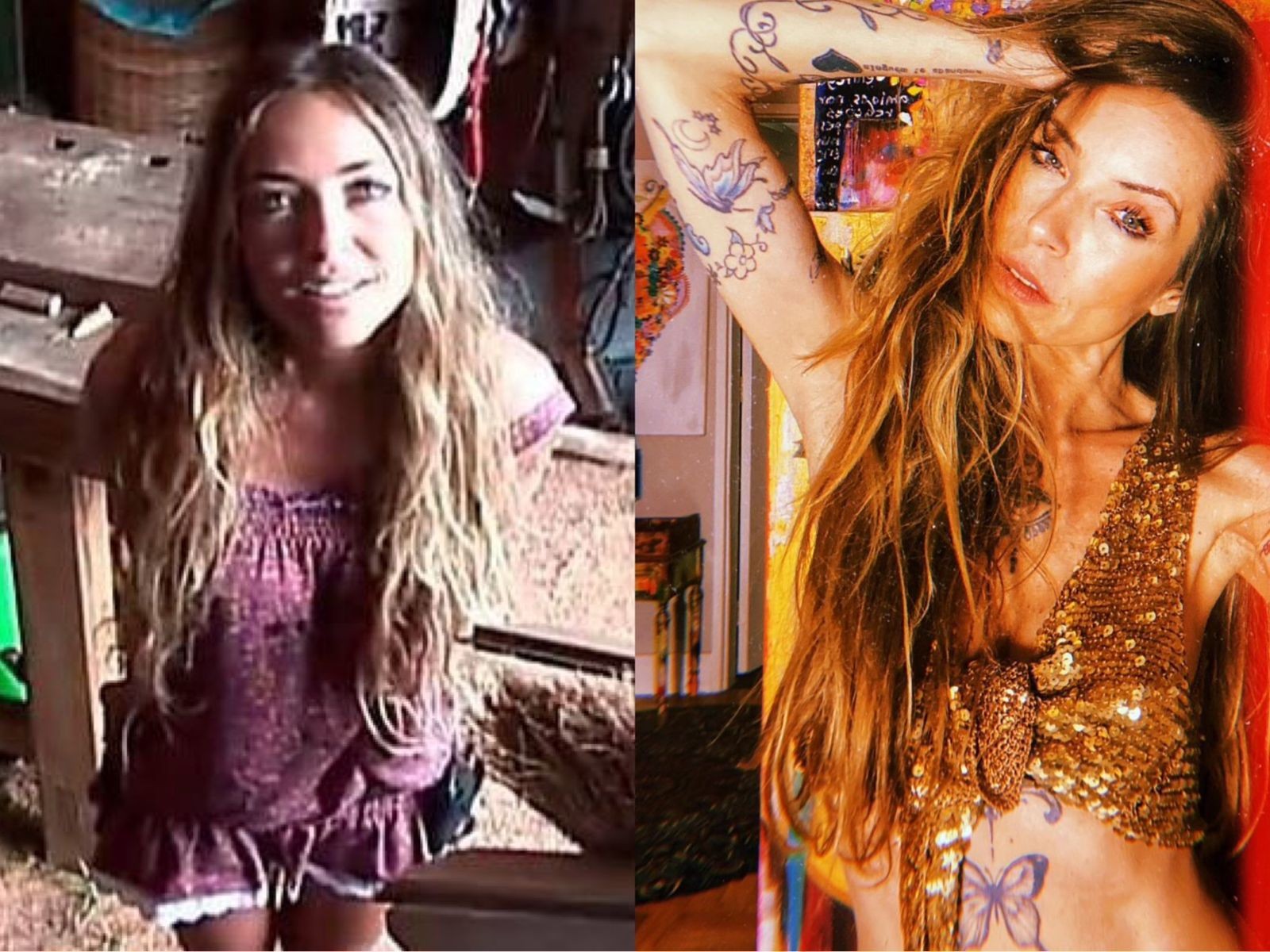 Bárbara Koboldt,que desistiu de "A fazenda" 1,hoje é artista plástica — Foto: Reprodução/ Record e Instagram