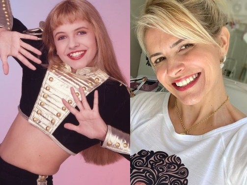 Andréa Faria,a Andréa Sorvetão,se tornou uma das Paquitas mais conhecidas do público. No Instagram,ela se descreve como comunicadora,atriz,cantora,influencer e palestrante — Foto: Reprodução e Globo/ Beatriz Damy