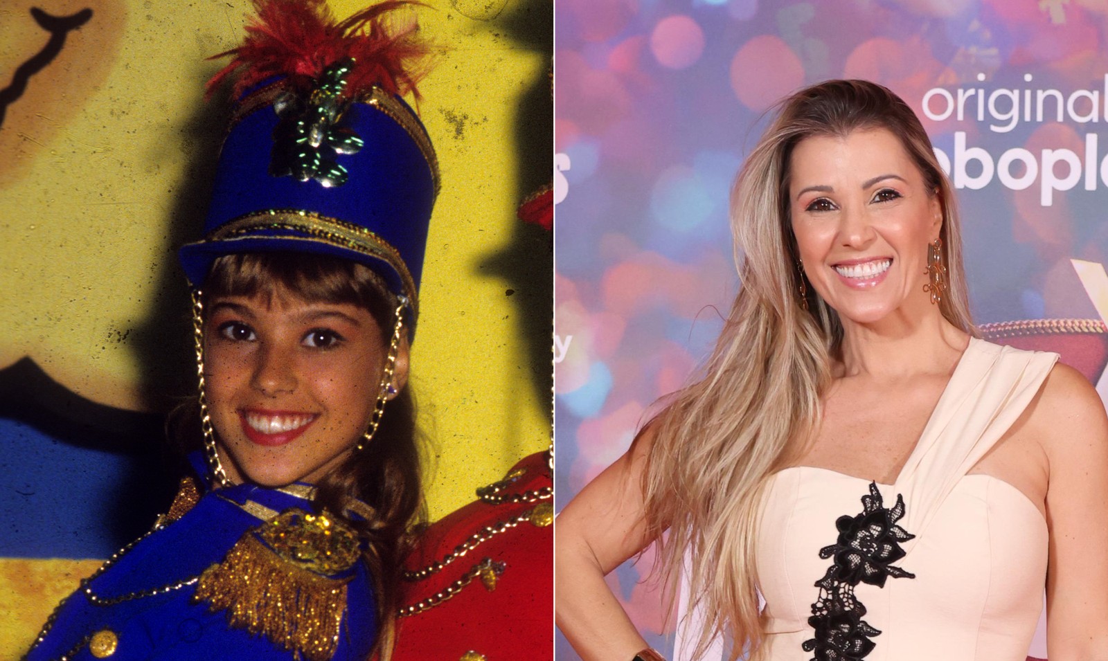 Pituxita Ana Paula Almeida,hoje é apresentadora e atriz — Foto: Lúcio Marreiro / Agência O Globo (1989) e Roberto Teixeira/Globo