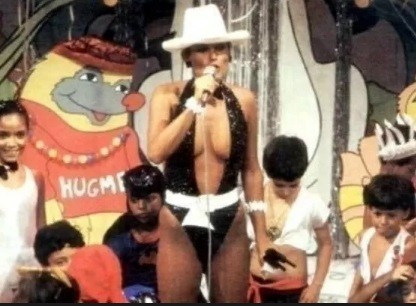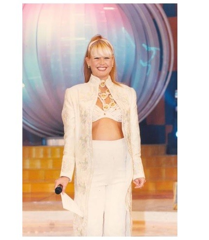 No início da carreira na TV,nos anos 90,o figurino escolhido para Xuxa usar na TV Manchete era ousado — Foto: Reprodução/TV Manchete
