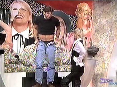 Galã dos gramados,Renato Gaúcho mostrou o abdômen e a cueca no quadro 'Intimidade',apresentado pela gaúcha no 'Planeta Xuxa' — Foto: Reprodução/TV Globo