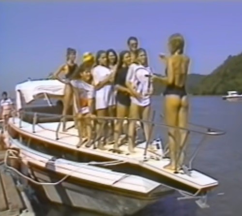 No fim dos anos 80,Xuxa mostrou,em vídeo da Globo,os sonhos materiais já realizados com sua família. Ela deu ao pai,Meneghel,um barco,por exemplo — Foto: Reprodução/Globo