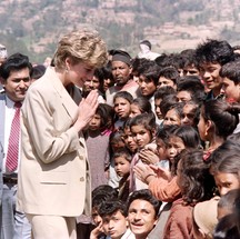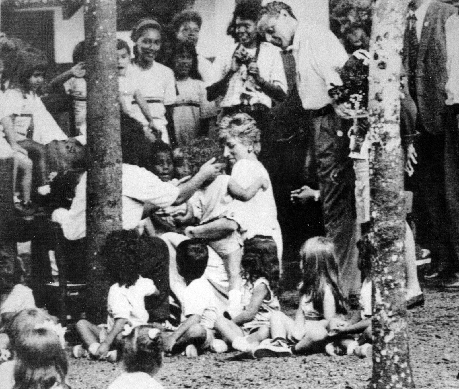 A princesa Diana,com crianças nepalesas durante visita a um projeto da Cruz Vermelha,nos sopés rústicos do Himalaia,em 1993 — Foto: Douglas E. CURRAN / AFP