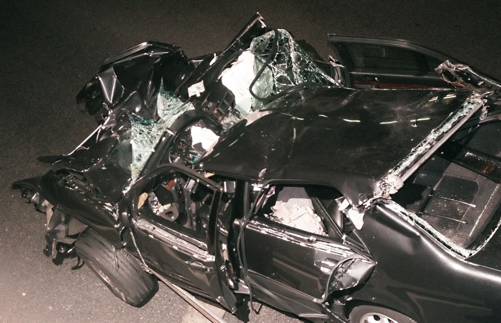 Foto de arquivo tirada em 31 de agosto de 1997 mostra os destroços do carro da princesa Diana após acidente que a vitimou em um túnel de Paris. — Foto: PIERRE BOUSSEL / AFP