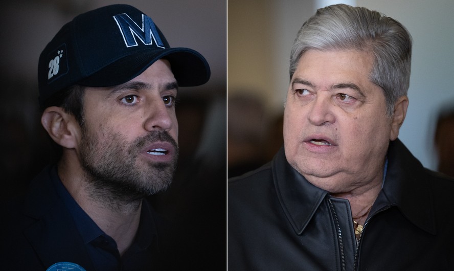 Os candidatos à prefeitura de São Paulo Pablo Marçal (PRTB) e José Luiz Datena (PSDB) — Foto: Fotos de Maria Isabel Oliveira/O Globo