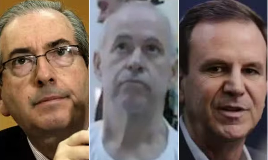 Da esquerda para a direita: Eduardo Cunha,Domingos Brazão e Eduardo Paes — Foto: Alexandre Cassiano/Agência O Globo,reprodução,Yasuyoshi Chiba/AFP