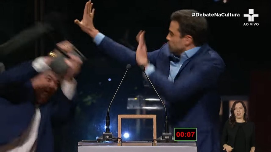 Datena atinge Marçal durante debate na TV Cultura — Foto: Reprodução