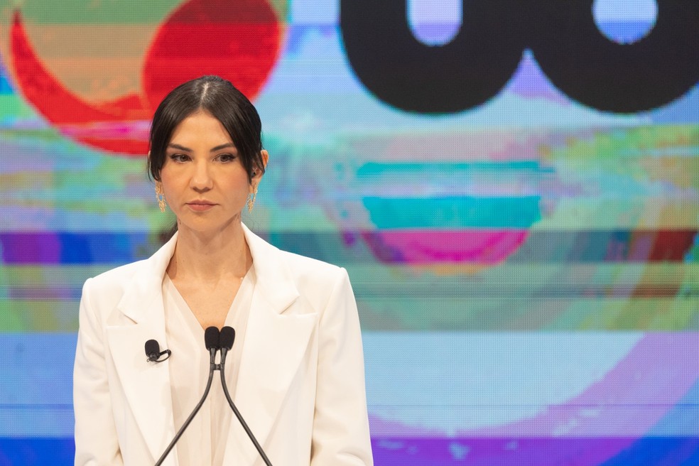 Amanda Klein: apresentadora teve de gritar para interromper discussão entre Nunes e Marçal — Foto: Maria Isabel Oliveira