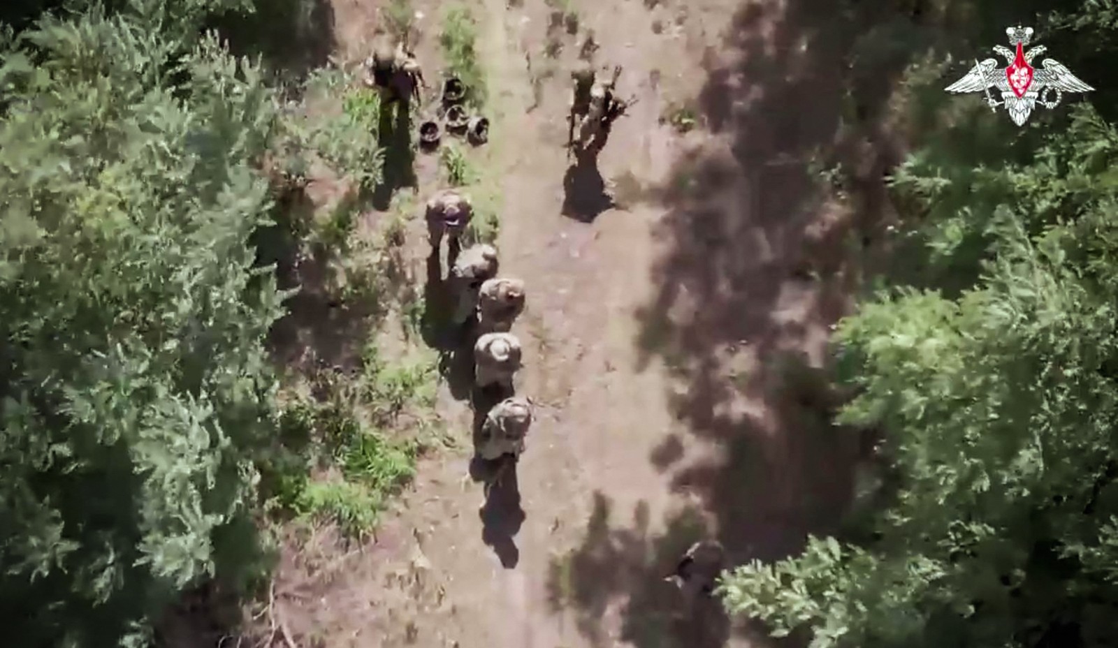 Imagem divulgada pela Rússia mostra soldados ucranianos capturados em Kursk — Foto: Ministério da Defesa da Rússia