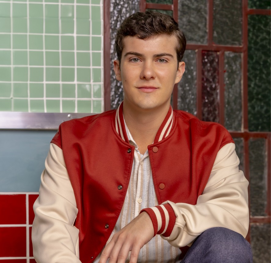 Edu (Caio Manhente) em \'Garota do momento\' — Foto: Beatriz Damy/Globo Caio Manhente caracterizado como Edu em “Garota do momento”. Filho de Anita (Maria Flor) e Nelson (Felipe Abib),o personagem