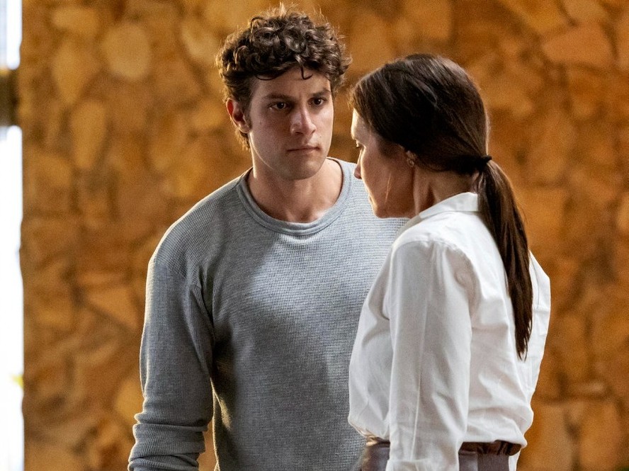 Mavi (Chay Suede) faz descoberta sobre o passado de Mércia (Adriana Esteves) — Foto: Globo/ Manoella Mello