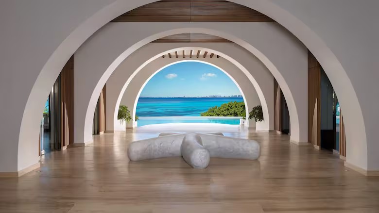 Localizado próximo às ruínas de um santuário dedicado a Ixchel,a deusa maia da Lua,da Fertilidade e da Felicidade,e a 25 minutos de catamarã de qualquer um dos terminais marítimos da costa de Cancún,o hotel dispõe de 125 suítes entre 130 e 300 metros quadrados e seu valor mínimo por noite é de cerca de US$ 1.400 (R$ 8 mil). A proposta inclui oito restaurantes à la carte – um deles comandado pelo chef italiano Paolo Parlanti,que tem estrela Michelin – e nove bares com bebidas alcoólicas premium.