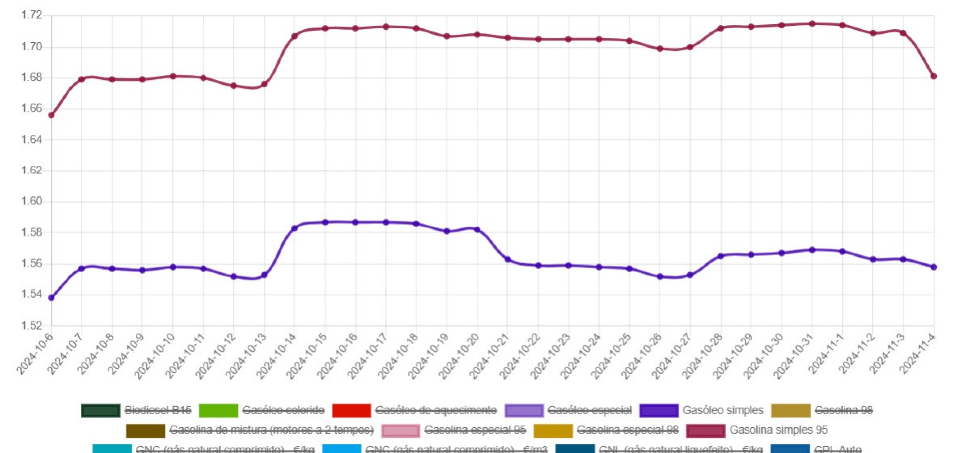 Veja o que aconteceu ao preço do gasóleo e ao da gasolina.