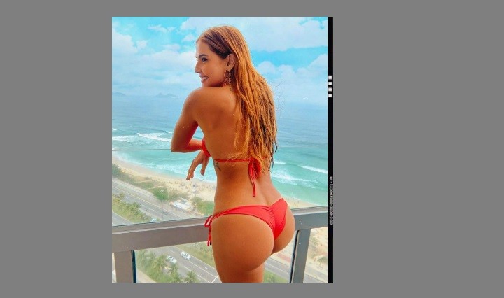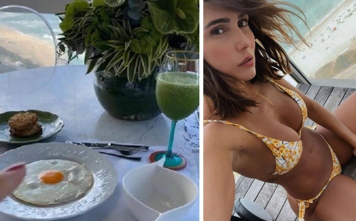 A atriz,que trabalha na TV desde a adolescência,tem apartamento com varanda de frente para o mar. Ela costuma mostrar,nos stories,momentos no cômodo