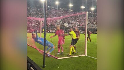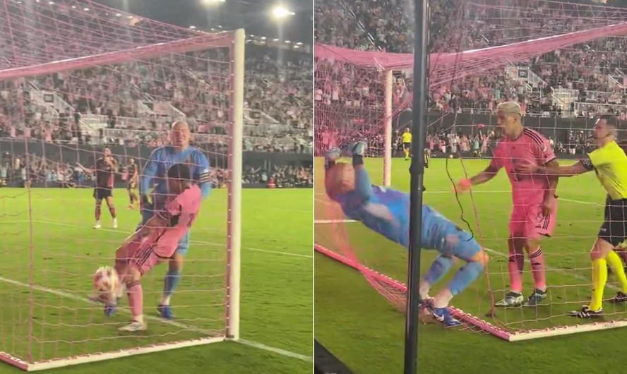La Pulga teve um "encontrão" com o goleiro adversário,Guzan,derrubando a bola das mãos do arqueiro. Enquanto Guzan se dirigia a Messi para reclamar,o camisa 10 colocou a bola debaixo do braço esquerdo e saiu correndo em comemoração. Mas a confusão só aumentou,porque o atacante equatoriano Leonardo Campana,do Inter Miami,deu um empurrão nas costas de Guzan,que caiu sobre a rede. Ao tentar se levantar,o goleiro ainda viu Luis Suárez,camisa 9 do time de Messi,se aproximar e colocar o dedo em sua cara.