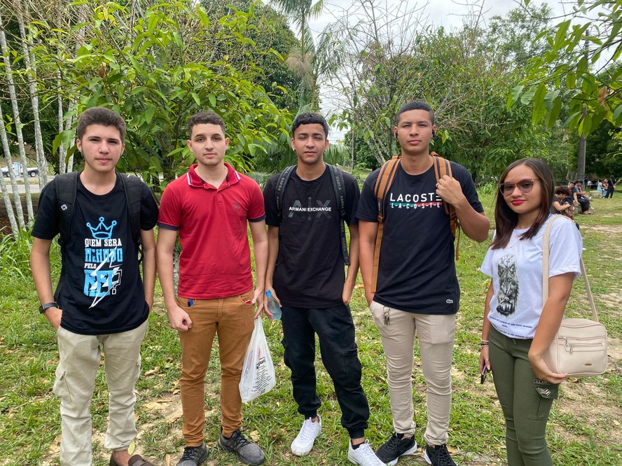 Do bairro Tancredo Neves,zona leste de Manaus,um grupo de amigos se prepara para o segundo dia do Exame Nacional do Ensino Médio (Enem). Caio Willian Alves Correia,17 anos,Betina Carvalho Fernandes,19,Julian Soares da Silva,Maicon Carvalho Melo,e Messias da Silva Cunha,18,são estudantes da Escola Estadual Rofran Belchor da Silva e estão fazendo a prova pela primeira vez.