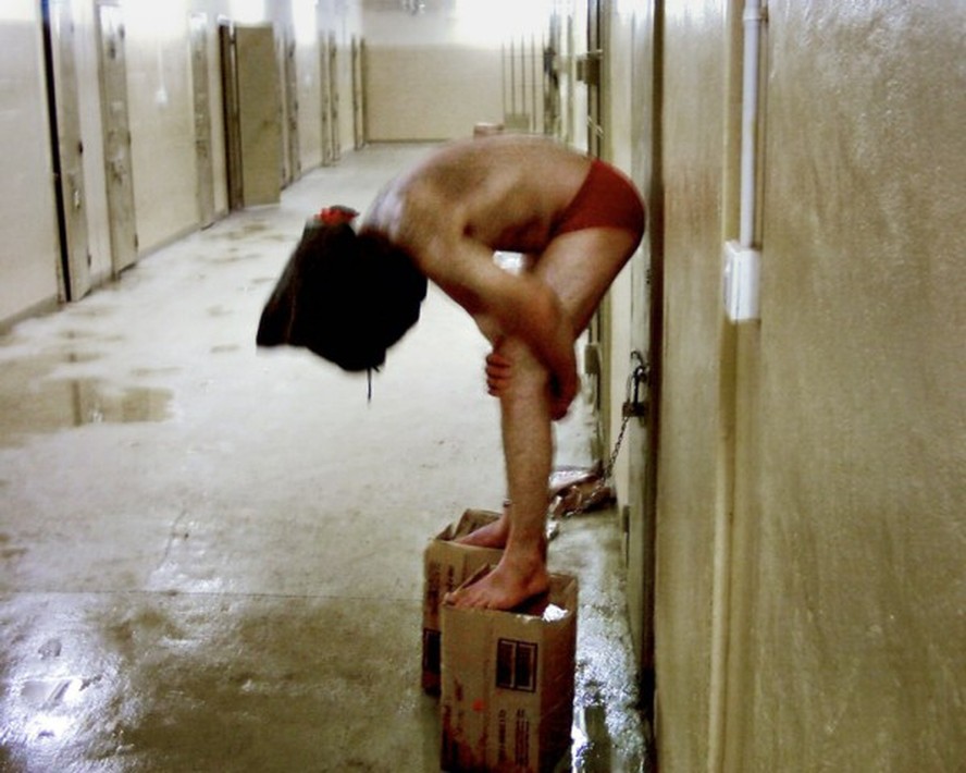 Prisioneiro em Abu Ghraib em imagem vazada em 2004 — Foto: AFP