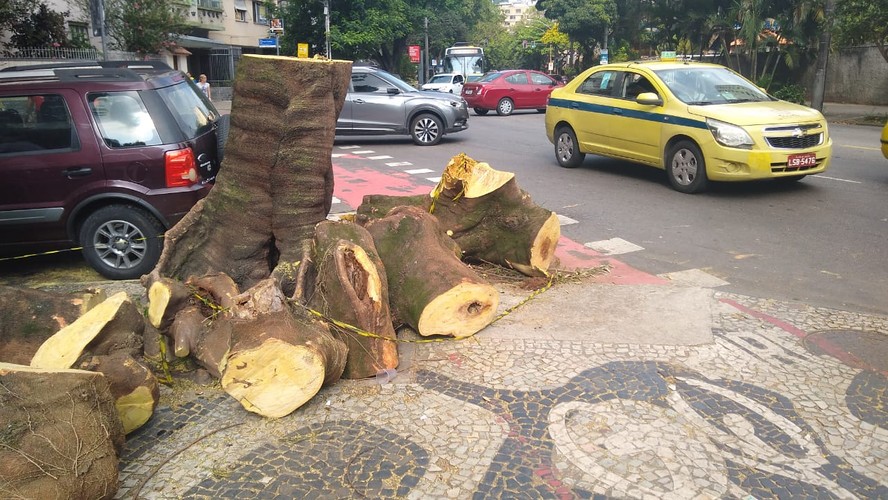 Árvore cortada em rua do Rio — Foto: Liane Reis RESUMOSem tempo? Ferramenta de IA resume para você