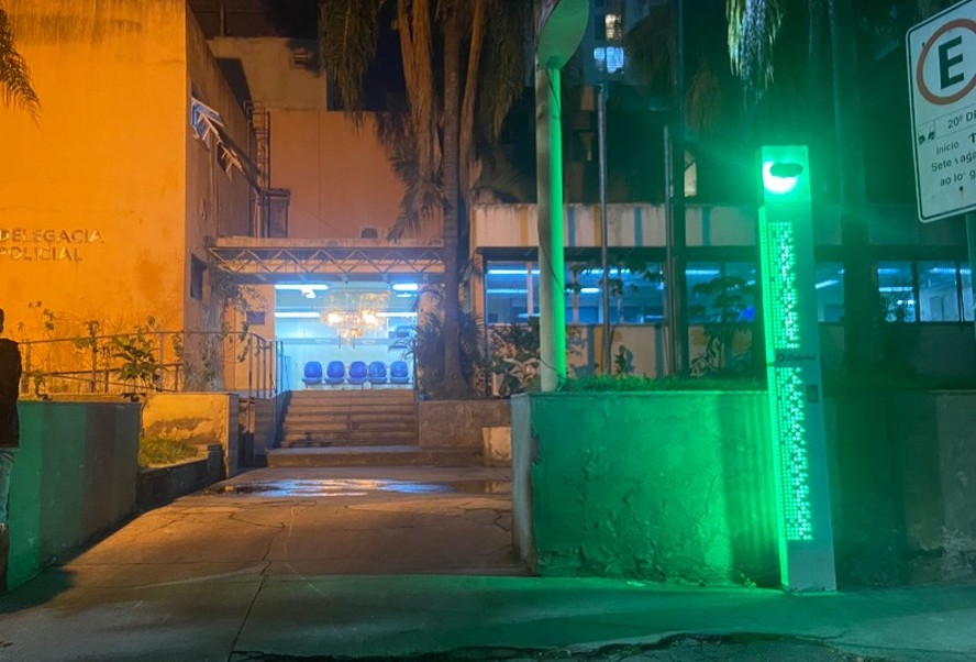 Delegacia de Vila Isabel tem totem de empresa privada de segurança — Foto: O Globo Veja que situação curiosa: a 20ª Delegacia de Polícia,localizada em Vila Isabel,na Zona Norte do Rio,instalou